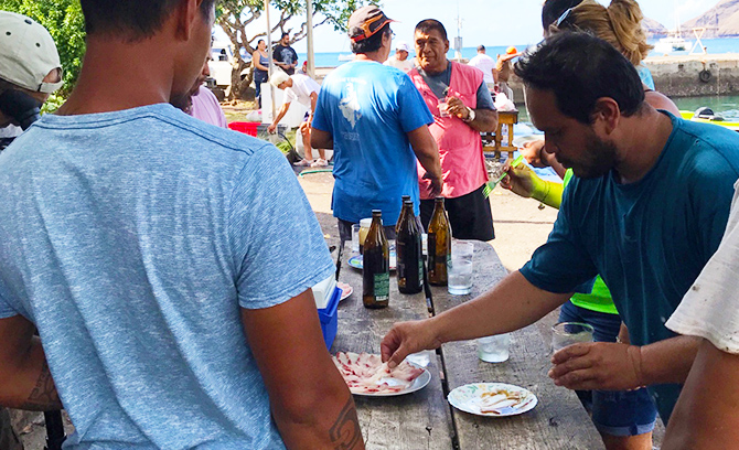 マルケサス諸島は海の幸が豊富なため、港での撮影を行った。